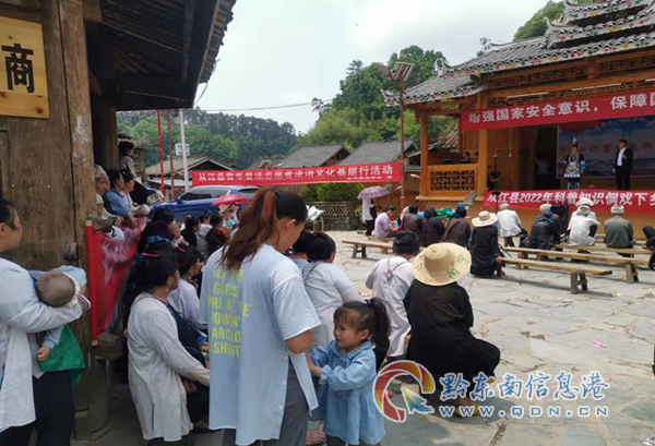 活動當天,以群眾喜聞樂見的唱侗戲形式向百姓宣傳民法典、國家安全、防邪反邪和鐵路護路等法治知識,通過曉之以理、動之以情方式教育廣大群眾要知法懂法,既接地氣又易于群眾接受。同時通過現場講解和發放知識手冊、宣傳單、圍腰、手提袋、雨傘、食鹽等形式面向群眾進行宣傳,引導廣大群眾“尊法、學法、守法、用法”,反對間諜、遠離邪教、破除迷信、崇尚科學、傳播文明�;顒又�,“中國計劃生育第一村”占里的群眾和游客絡繹不絕,氛圍高漲。