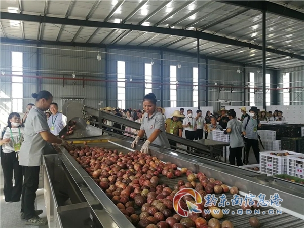 從江縣農特產品集散中心占地2500余畝,是集百香果種苗母本、苗木培育種植、分揀儲藏、精深加工及其他農特產品交易物流為一體的全產業鏈集散中心。參觀人員得到集散中心領導和各部門工作人員的熱情接待。