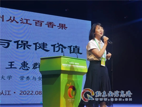 湖南星勤果業副總經理劉平發表主題演講《六成鮮果四成加工——星勤果業對從江百香果產業的發展建議》。貴州醫科大學公共衛生學院副教授王惠群從專業角度解讀從江百香果的營養價值。