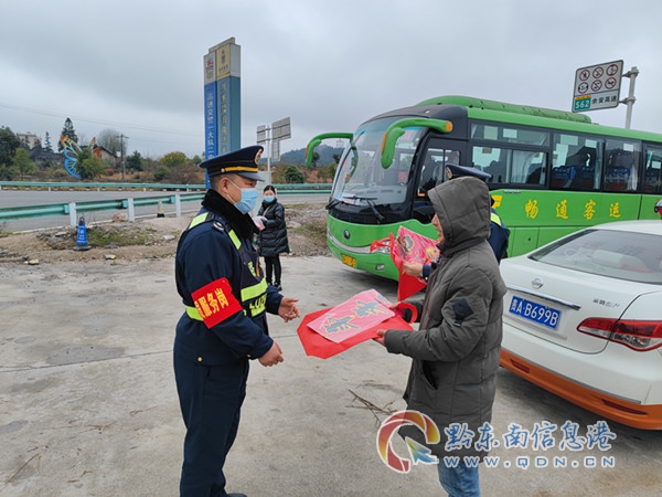 活動現場,路政員為過往司乘人員送“福袋”、送春聯,發放春運宣傳資料,宣講交通安全,并免費提供方便面、小面包、水果等食品。活動中,路政員告誡司乘人員春運即將來臨,不要在高速公路上行走,一時的方便可能是一生的悔恨;同時提醒司乘人員駕車外出注意先檢查車況,在高速公路上出現任何安全或需救援的情況請撥打12328,提醒貨車駕駛員要規范裝載,拒絕超限超載;同時年關將至各類詐騙手段層出不窮,路政員為司乘人員講解常遇到的詐騙案例,并叮囑司乘人員要提高防騙意識。考慮到天氣寒冷,路政員還為司乘人員準備銀耳粥驅寒,叮囑司乘人員注意自身防護,記得佩戴口罩。在交流中,許多務工返鄉人員說,由于疫情原因,今年回家過年的人比較少,非常感謝你們的熱情,這份福袋和春聯讓我們感受到了家鄉的溫暖。