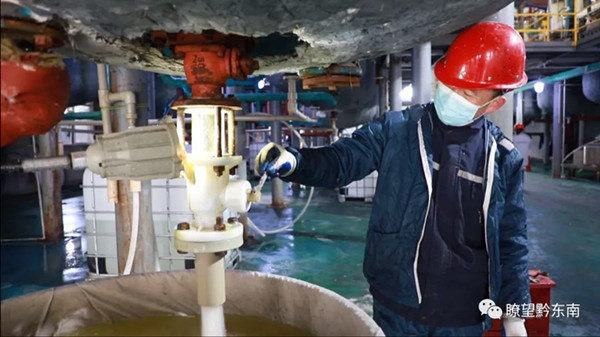 在貴州美森克醫(yī)藥科技有限公司制藥生產(chǎn)車(chē)間,記者看到,生產(chǎn)車(chē)間內(nèi)處處機(jī)器轟鳴,投料、觀察、化驗(yàn),各條生產(chǎn)線正常運(yùn)行,工人們正在加班加點(diǎn)趕制訂單,確保供貨充足。