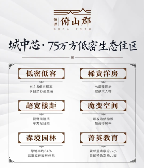 從技術到藝術、以匠心致人心,追求尊崇品質人居的恒洋·俯山郡,精心營造每一寸空間美學,反復考究、反復考量,將每一分用心、每一處細節注入產品;以實景展現未來,以品質筑就典范。