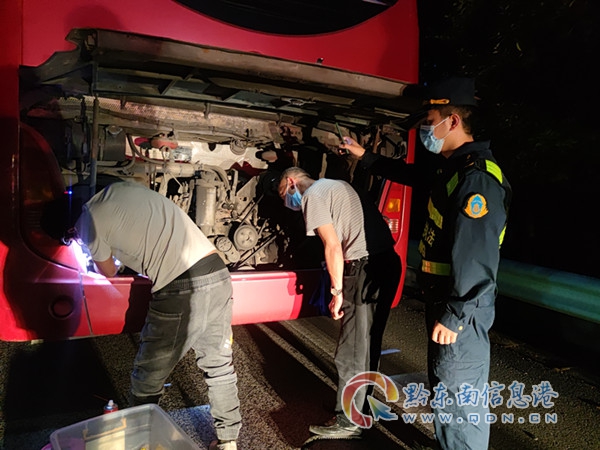 19時34分,發動機皮帶送到,維修人員在夜幕下加緊維修,19時42分車輛維修完畢,乘客有序上車,車輛駛離現場。臨行前,乘客們紛紛豎起大拇指對交通執法人員點贊。