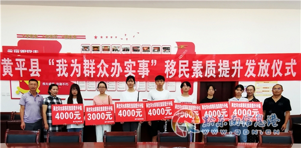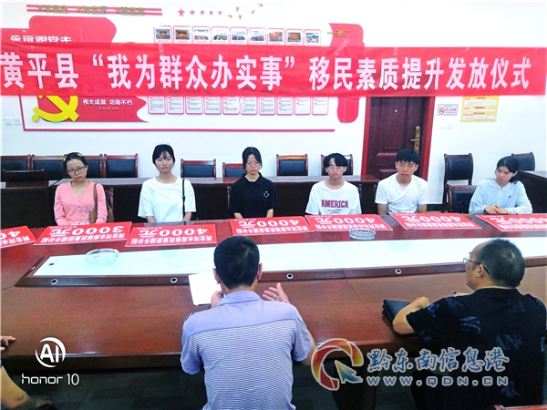 本網訊 8月27日,黃平縣生態移民局到舊州冷水河移民社區對7名剛剛考入大專以上院校的水庫移民子女發放0.3至0.4萬元不等的“移民素質提升補貼”共2.7萬元,這是該自2014年在全縣實施移民素質提升補貼以來,已累計向水庫后期扶持移民發放補貼達62.87萬元。