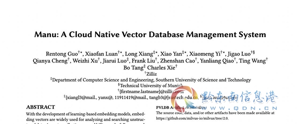 近日,Zilliz技術團隊最新數據庫研究成果再獲國際認可。面向向量數據管理而設計的云原生數據庫系統Milvus2.0論文《Manu:ACloudNativeVectorDatabaseManagementSystem》入選數據庫頂級會議VLDB'22。作為初創公司,Zilliz始終堅持引領數據庫領域的研究與創新。此前,Milvus論文《Milvus:APurpose-BuiltVectorDataManagementSystem》被數據庫頂會SIGMOD'21收錄。在人工智能領域全球頂級學術會議NeurIPS'21的向量檢索挑戰賽BigANN中,Zilliz憑借自研的磁盤存儲優化算法奪冠,進一步擴展了向量搜索算法的邊界。