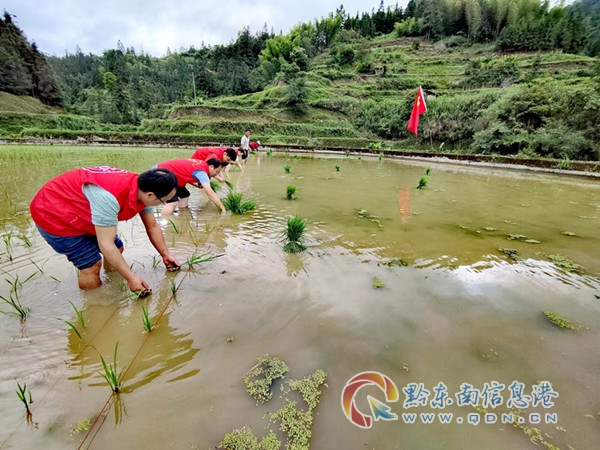 本網訊 農家少有農閑月,此時插秧正當時。當前正值水稻移栽大好時節,為有效完成水稻移栽工作,穩定糧食產量。劍河縣太擁鎮充分發揮黨員干部“先鋒模范”帶頭作用,組織黨員干部開展“助農插秧”主題黨日活動,為今年糧食豐收打下堅實的基礎。