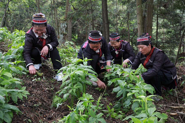 劍河縣柳川鎮柳落塘村,村民們在林下中藥材種植基地除草