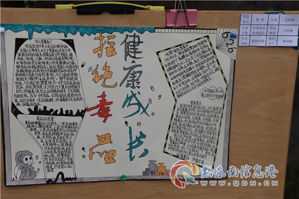 隨后,組織學生觀看宣傳資料、禁毒展板、學生繪畫作品,對征集的40幅“健康人生 綠色無毒”主題繪畫作品進行現場評比,并頒發獎品,最終有6名學生的作品獲獎。