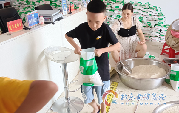 眾力并則萬鈞舉,人心齊則泰山移。從彎彎稻穗變成粒粒白米,這其中過程需要消耗大量的人力資源,而當銅鼓鎮花橋村村民知道楊子嘉(銅鼓鎮嫩寨村人)、肖池彬等合作投資的合作社要為貴州民族大學捐贈大米的行動后,紛紛自愿當免費勞動力。據了解,特別是包裝大米那天需要人手,上到80歲老人,下到8歲孩童,還有3公里外騎著三輪車來的鄰村村民都在幫忙。其中80歲的老人是原銅鼓鎮花橋村黨支部書記石順榮,而8歲的小孩就是肖書記的孩子。