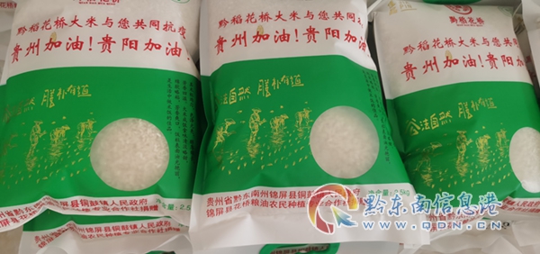 9月2日貴陽爆發疫情以來,貴陽市錦屏商會籌備組及成員積極投身抗疫一線。當貴陽市錦屏商會籌備組成員、民革直屬貴州民族大學支部副主委楊光煥獲悉貴州民族大學因疫情防控食材緊缺后,緊急向貴陽市錦屏商會籌備組反饋和對接,該會擬任副會長楊子嘉立即響應并行動,馬上落實有其參與投資的錦屏縣花橋糧油種植農民專業合作社具體實施捐贈3.8噸有機新米事宜。由于時間緊、任務重,只能加班加點收割、晾曬、加工和包裝;作為貴州民大校友、錦屏縣委宣傳部副部長龍娟積極協調定點捐贈及物資配送事宜。通過6天的共同努力,最終完成3.8噸、價值5.5萬元的“黔稻花橋”高品質有機新米安全順利送達。