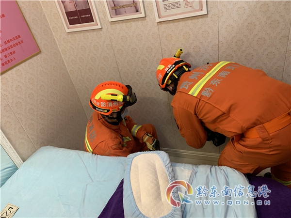 很快,救援人員經現場觀察,伴隨著“喵喵聲”定下了救援方案。在征得店主同意后,救援人員利用破拆工具組對墻體進行破拆,同時,還不忘安撫“小家伙的情緒”。僅僅不到三分鐘,救援人員成功在隔墻上“捅了個簍子”,透過一絲微光,看到了一雙無助的眼神,像極了闖禍的孩子一般。正當救援人員小心翼翼地伸手救援時,“小家伙”卻害怕的躲了起來,無論怎么哄都不出來。“小家伙快出來,我是來救你的,別怕!”見小貓一直躲著怎么都夠不著,僵持了一會兒的救援人員有點焦急,竟和小貓說起了話。