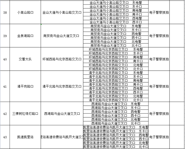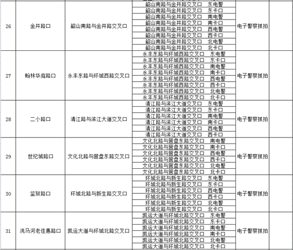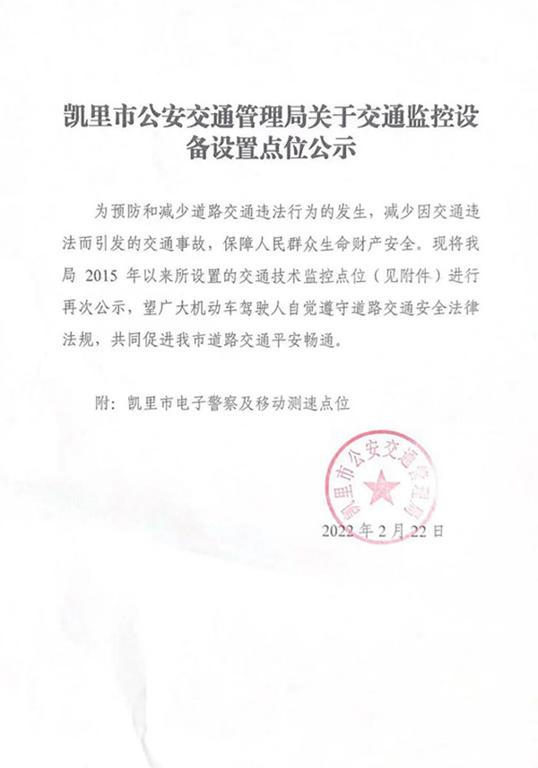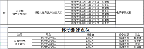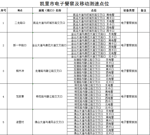 附:凱里市電子警察及移動測速點位
