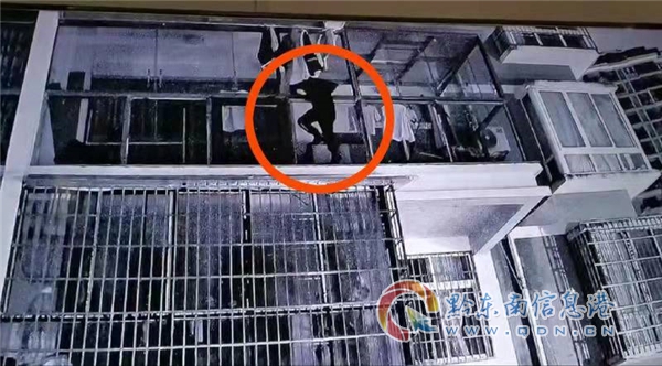 監控顯示:2:55,蒙面黑衣人翻越圍墻后,3:10左右,借助一樓和二樓的防盜窗爬到三樓右邊一戶窗外,但因有窗戶反鎖,無法進入窗戶,稍作修整后,向左踩著二樓的玻璃頂爬上三樓窗戶(未安裝防盜窗),3:10左右打開窗戶翻進入室內實施盜竊。4:00左右,蒙面小偷從住戶大門走出,下到一樓,沿來路翻墻返回,離開該小區。