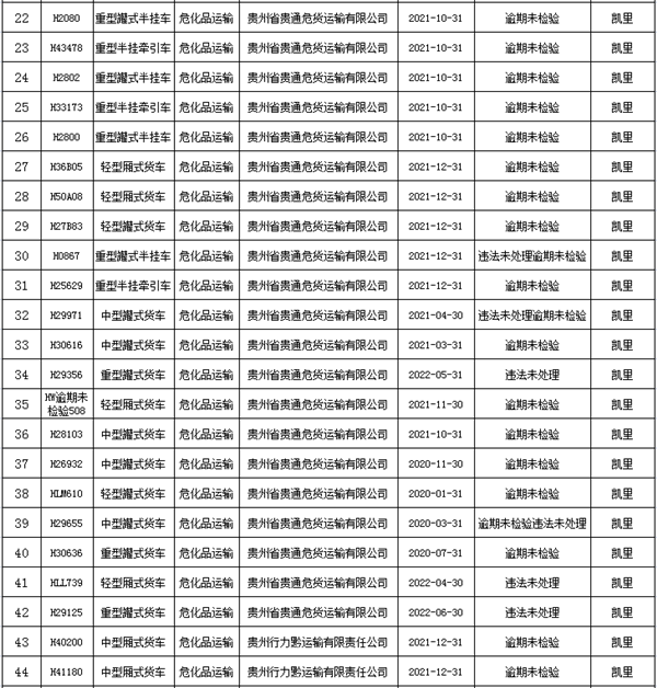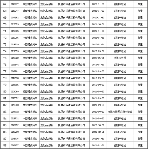 現將詳細信息進行公布,請上榜客運企業督促相關車輛駕駛人到凱里市民之家、凱里市公安局交警大隊車輛管理所辦理駕車輛檢驗業務。