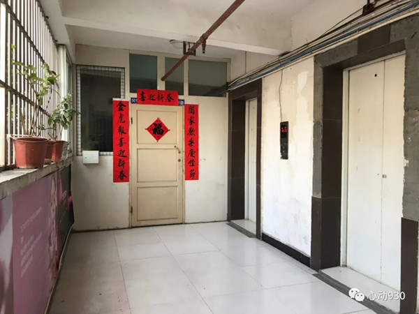 聯(lián)合檢查組成員告訴記者,這還不是這棟樓最嚴重的情況,記者跟隨聯(lián)合檢查組來到一個較低樓層的住戶門前,一下電梯,準備往前走時,一堵木門映入眼簾。