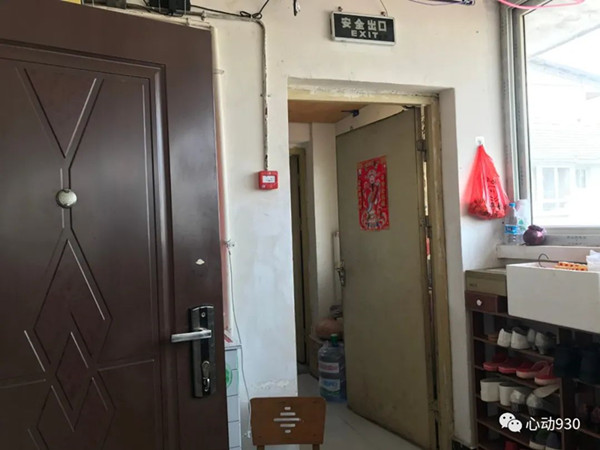 “你看,這是住宅樓的頂層,住在兩側(cè)的住戶已經(jīng)分別將防火門拆掉,用水泥磚砌起了一個自家‘小隔間’。”