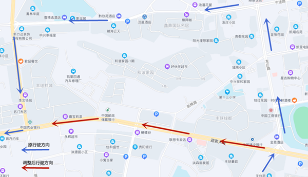 1. 由原途經(jīng)銀桂大道(高鐵南站路段)調(diào)整為行經(jīng)紅云、凱旋大道路段,到春暉大道(中)站點(diǎn)后按原線(xiàn)行駛。