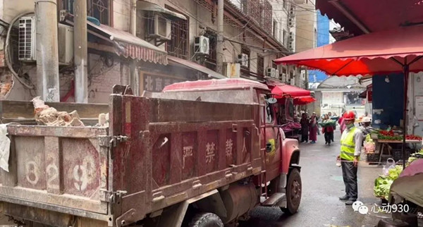 4月12日上午,記者在一商場門口看到,這里機械轟鳴,人頭攢動,一棟違建已經拆除,半空中密密麻麻的電線電纜被卸下,現場拉起了警戒線……這個老城中心商業區的“臟亂差”地方即將舊貌換新顏。