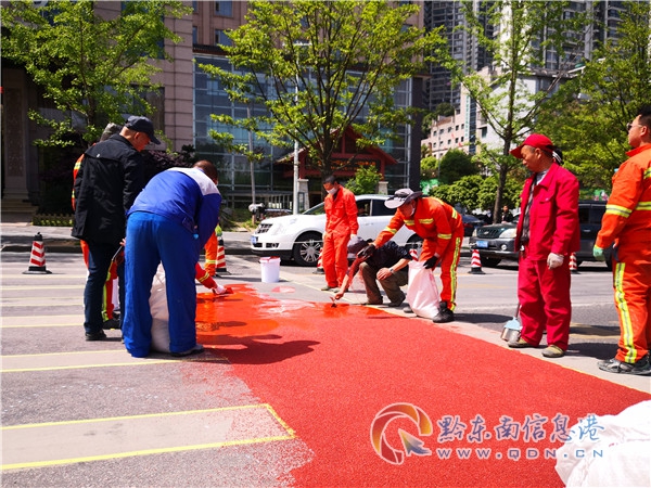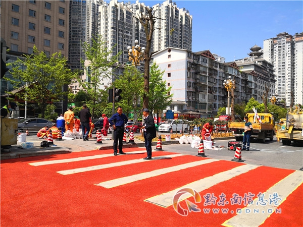 斑馬線即行車、行人的交通安全生命線。為提升斑馬線安全文明,凱里市綜合行政執法局領導先前特意分析學習了一些城市的優秀做法,發現鋪設“陶瓷顆粒”讓斑馬線醒目又防滑,既能有效提醒司機、行人“斑馬線到了”,又能為行人防滑、為一些急剎車增加摩擦力和安全度,于是在凱里引入陶瓷顆粒斑馬線。