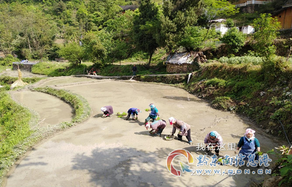 (圖為,黃臘村村民正在插秧苗)