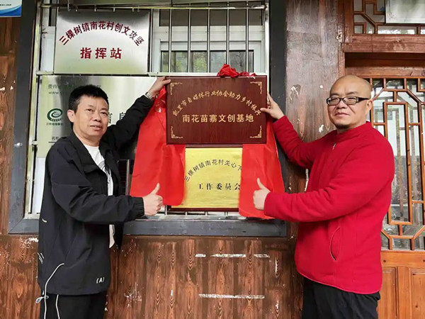 參觀結(jié)束,凱里市自媒體行業(yè)協(xié)會(huì)相關(guān)負(fù)責(zé)人與做客鄉(xiāng)村(黔東南)文旅產(chǎn)業(yè)發(fā)展有限公司負(fù)責(zé)人黃昌松進(jìn)行了座談交流,雙方現(xiàn)場(chǎng)簽署了戰(zhàn)略合作協(xié)議,并舉行了“凱里市自媒體行業(yè)協(xié)會(huì)助力鄉(xiāng)村振興南花苗寨文創(chuàng)基地”掛牌儀式。