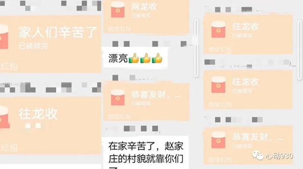 期間,參與打掃的一位村民將眾人熱火朝天干活的場景分享到了趙家莊村民的微信總?cè)骸?a href="http://www.dghzdr.com/html/video/vod/" target="_blank" class="keylink">視頻中熟悉的環(huán)境,村里男女老少彎著腰滿頭大汗拿著鐮刀除草的畫面讓身處異鄉(xiāng)的年輕人倍受感動,一場“紅包雨”由此展開。