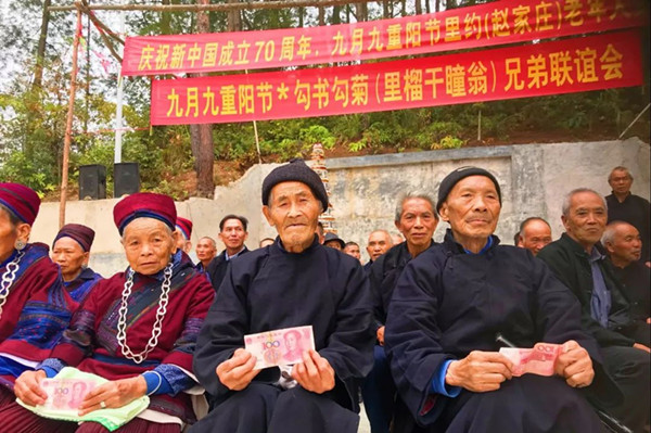 尤其在重陽節(jié)的時候,在外務工的年輕人、經(jīng)商的老鄉(xiāng),外嫁的姑娘都會回到趙家莊,為老人們籌備“敬老宴”。宴請村里60至90歲以上老人吃飯,還給他們發(fā)“祝壽”紅包,所有花銷都是務工的年輕人,相關企業(yè)單位集資而來,并延續(xù)多年。