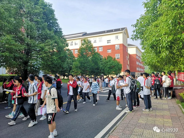 在附中考點(diǎn),當(dāng)大巴車在警車護(hù)送下緩緩駛?cè)雽W(xué)校大門時,學(xué)子們下車,步伐堅(jiān)定的走進(jìn)考場。