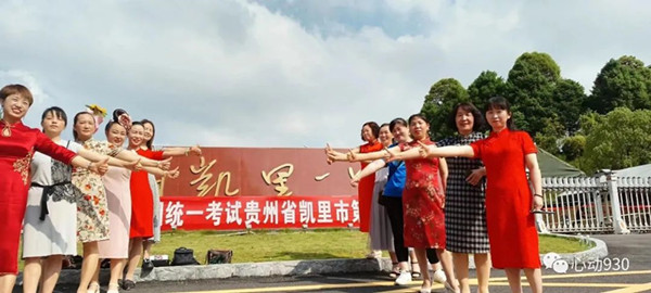 在凱里一中、凱里實(shí)驗(yàn)高級中學(xué)門口,這里的送考的家長們用不同的方式,表達(dá)對孩子的希望和祝福:有的家長準(zhǔn)備了高考加油的標(biāo)語,有的家長齊聲吶喊口號,有的家長穿上了旗袍,祝福考生“旗開得勝”。