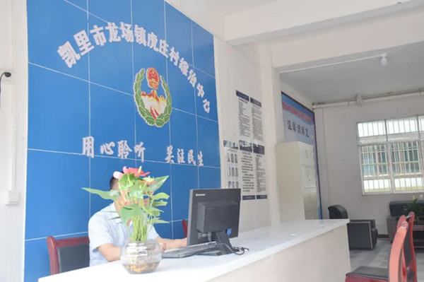 細心的人會注意到,從凱里城區前往虎莊,到凱爐、凱重公路的交叉處,立著一幢樓房,那是虎莊村黨群服務中心,虎莊村“兩委”就在里面辦公,服務全村976戶村民。