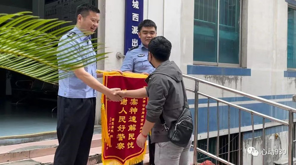 為了感激民警為自己挽回了部分損失,第二天,陳某帶著一面錦旗和兩個西瓜來到派出所。“很感謝警察同志的及時幫助,要是沒有他們我會被騙得更多。”面對記者的采訪,陳某激動的說。同時,民警也在現場為陳某的手機開啟了反詐APP功能。