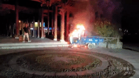 熊熊大火里,夾雜著車玻璃碎裂的聲音