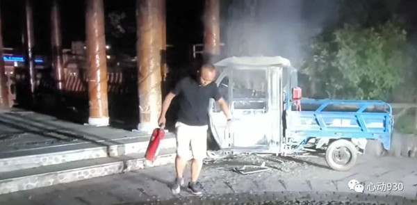 但火太大了,他來回跑著,在用完了一個、兩個、三個、四個滅火器后火情被控制,此時,消防員也及時趕到了,在大家的配合下,大火被撲滅。