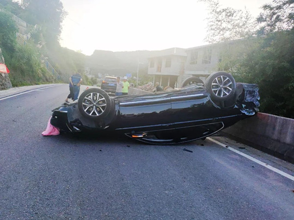 經詢問得知,當天下午,駕駛人韓某駕駛車輛由凱里經濟開發區往大風洞對江村方向行駛,18是30分許,當車輛行駛至對江村路段處,韓某在進行倒車時,因操作不當,導致車輛失控,墜入后方路砍,所幸當時系了安全帶,僅受到驚嚇及一點輕傷。