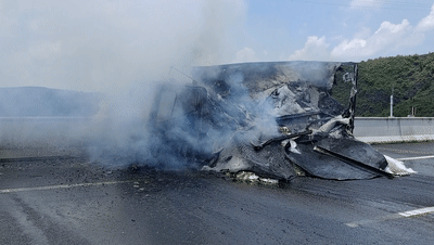 自燃貨車險(xiǎn)情處置完畢,消防救援人員確認(rèn)無法復(fù)燃后,將事故貨車拖離高速公路,道路恢復(fù)正常通行。