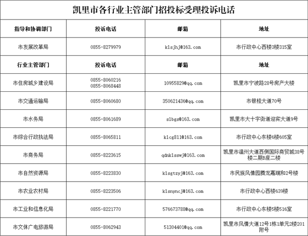 轉(zhuǎn)需!凱里市各行業(yè)主管部門招投標(biāo)受理投訴電話
