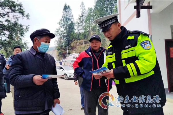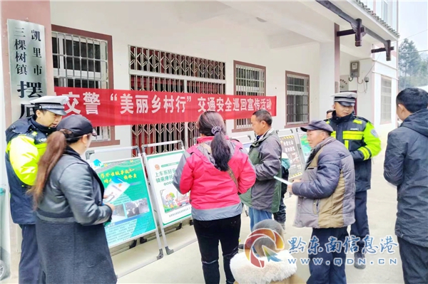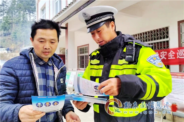 本網訊 “掃寨”是黔東南州苗族人民的一種集體防火保寨的民間習俗活動,歲末年初之際,為深入推進歲末年初農村道路交通安全管理工作,創建更加濃厚交通安全環境氛圍,有效預防和減少冬季道路交通事故的發生,12月3日,凱里市公安局交警大隊三棵樹片區中隊以農村民俗活動為契機,結合“減量控大”工作目標,以冬季交通安全宣傳為抓手,組織宣傳民警走進轄區平樂村、擺底村、季刀村開展農村冬季交通安全宣傳活動。