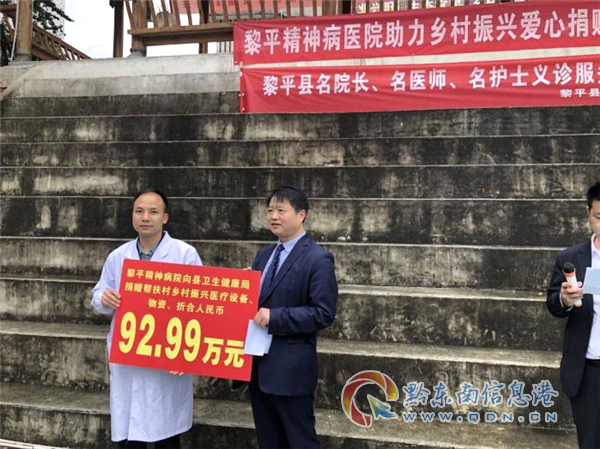 捐贈儀式上,黎平精神病醫院院長金仁坤先生代表醫院和個人,向鄉鎮衛生院捐贈價值約93萬元的醫療設備246件,向美老村小學捐贈床鋪10張,被套20套,向美老村民委捐贈投影儀1臺,向縣衛生健康局鄉村振興聯系幫扶村捐贈19.59萬元,為全縣衛健系統助力鄉村振興開好頭。當天,該局組織名院長、名醫師、名護士等“三名工程”醫學專家分赴縣衛生健康局聯系幫扶的雷洞鄉美老、廈頭、亞跨等村開展“專家服務基層”義診活動,幫助民族地區群眾看病就醫。義診中,醫學專家們細心地詢問、認真地檢查、耐心地回答、精湛的醫術、良好的醫德深受群眾好評。義診現場,黎平誠德醫院院長王軍武先生免費向患者提供價值1.2萬元的藥品,贏得群眾高度贊揚。