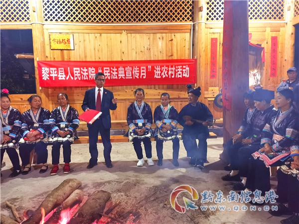 5月11日,在黎平縣永從鎮(zhèn)六沖村雅蟬寨的鼓樓里,歌聲陣陣,格外熱鬧,這是黎平縣人民法院與永從鎮(zhèn)聯(lián)合開展的民法典宣傳月進農(nóng)村宣傳宣講現(xiàn)場。