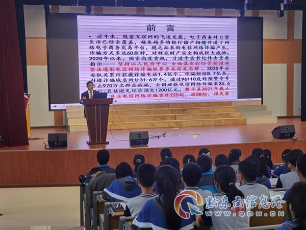 課堂上,學生們邊聽毛恩躍的講座,邊看多媒體課件,在講到防范電信網絡詐騙環節時,現場播放了短視頻,讓學生更直觀地了解電信網絡詐騙和滯留緬北人員“淘金夢”真實的悲慘故事,十分震撼,受到教育。