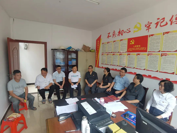 在高澤村委會,法官與鄉村干部坐在一起,了解村級基本情況并指導村級矛盾糾紛調處工作。