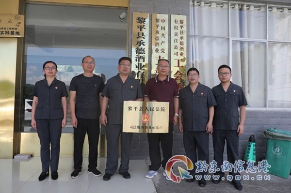 本網訊 近日,黎平法院黨組書記、院長吳帆一行來到黎平縣承德酒業有限責任公司掛牌“司法服務企業示范點”。至此,黎平縣人民法院三個“司法服務企業示范點”已全部掛牌完畢。