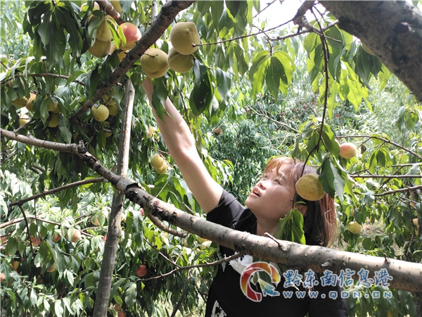 “黃桃采摘技術(shù)含量低,體力消耗小,女的120元/天,男的150元/天,工資日結(jié),工作輕松離家又近。”村民龍安平樂呵呵的說道。