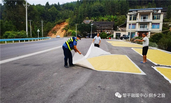 在此提醒廣大群眾:為了自己和他人的生命財產安全,為了道路交通暢通有序,請不要在公路上攤糧、曬糧。