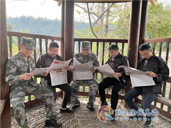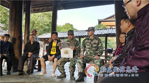 黎平縣人武部組建黨的二十大專武干部、民兵干部宣講小組,利用“苗侗”雙語解讀黨的二十大精神,以接地氣的語言、聽得懂的道理、講故事的方式深入肇興侗寨、地坪苗寨等少數民族村寨,到鼓樓下、花橋邊宣講黨的二十大精神,讓黨的二十大精神“飛進”苗鄉侗寨,黨的聲音響徹苗鄉侗寨每個角落。