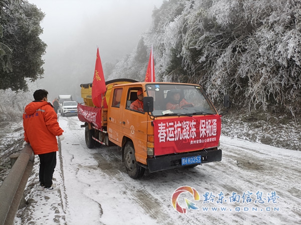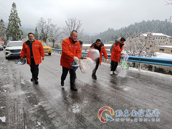 早在凝凍天氣到來之前,為全力保障春運期間公路安全暢通,雷山公路管理段就多措并舉做好了充足準備。發現道路結冰后,立即啟動了冰雪天氣應急預案,第一時間出動應急人員,調動撒鹽車、裝載機、融雪劑等應急機械物資前往一線,全力除冰保暢!