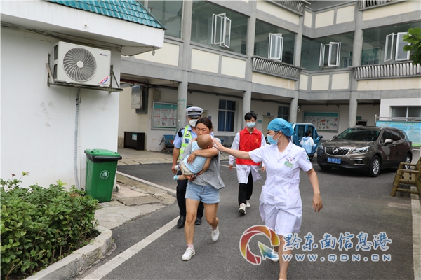 6月26日上午09時許,雷山縣公安局交警大隊西江中隊黨員民輔警按照日常勤務在轄區營上十字路口執勤,突然一輛大班車停靠在執勤點附近,駕駛員急忙下車救助,聲稱車上有一名女乘客帶著因高燒導致昏迷的小孩,請交警幫助送至就近醫院治療。正在執勤的金華隆、歐天陽聽到后,跑到大班車上查看,發現焦急的女乘客抱著2歲左右的小孩,小孩出現面色蒼白、嘴唇發紫、身體發燙、意識不清等癥狀,情況危急,急需送醫治療。金華隆、歐天陽兩人立即幫女乘客攜帶隨身物品和一家三口換乘警車。為了給小孩爭取搶救時間,歐天陽駕駛警車,金華隆一邊撥打120急救電話,一邊跟指揮中心匯報情況。