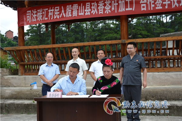 本網訊 為了助力國家“雙碳”戰略,鞏固脫貧攻堅成果,助力鄉村振興,立足于雷山縣實際情況,積極推動生態資源產業化,先行探索林業碳匯價值轉換,真正將“綠水青山”變成“金山銀山”。 近日,司法碳匯村民入股雷山縣玖香茶葉加工廠合作簽字儀式在西江鎮黃里村蘆笙場舉行,縣法院、縣林業局、西江鎮政府等相關負責人,參與和見證了一場獨特場景——司法碳匯村民入股雷山縣玖香茶葉加工廠合作簽字儀式。身為脫貧監測對象的15家農戶,分別走上前臺,與廠長侯小東相互簽字互換文本,將自家樹林交付企業共同管理聯合經營,林農成為企業股東,享受分紅等權益。
