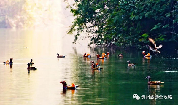 鴛鴦湖位于石阡縣中部,包括鴛鴦湖和包溪河兩個片區(qū),涉及楓香、五德、湯山、中壩、坪山5個鄉(xiāng)鎮(zhèn)9個行政村。鴛鴦湖狹長、水面寬100米至200米,湖水澄碧翠綠。由于生態(tài)環(huán)境保護良好,有2000多只的鴛鴦生活在這里,已經是全國最大的鴛鴦棲息地。每年九月初,鴛鴦種群陸續(xù)飛到鴛鴦湖越冬,次年4月初又陸續(xù)北歸。當然也有部分鴛鴦世代生活于此,定居了。2011年,鴛鴦湖被授予“國家濕地公園”稱號。