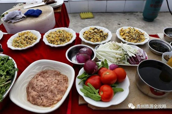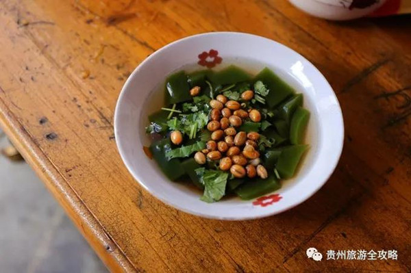 石阡的美食也非常多,如綠豆粉、黃水粑、石阡皮蛋、神仙豆腐、豆腐乳等。所謂的神仙豆腐就是用當地的“神仙樹”之葉做的。將鮮嫩的神仙葉采集洗凈放入盆或桶中反復揉搓,等綠瑩瑩的汁水流出后濾出葉渣,再將事先準備好的草木灰水點入其中,待自然冷卻后,即成天然翠綠色的神仙豆腐。石阡的美食很多,還等著廣大的游客去發(fā)現和品嘗。